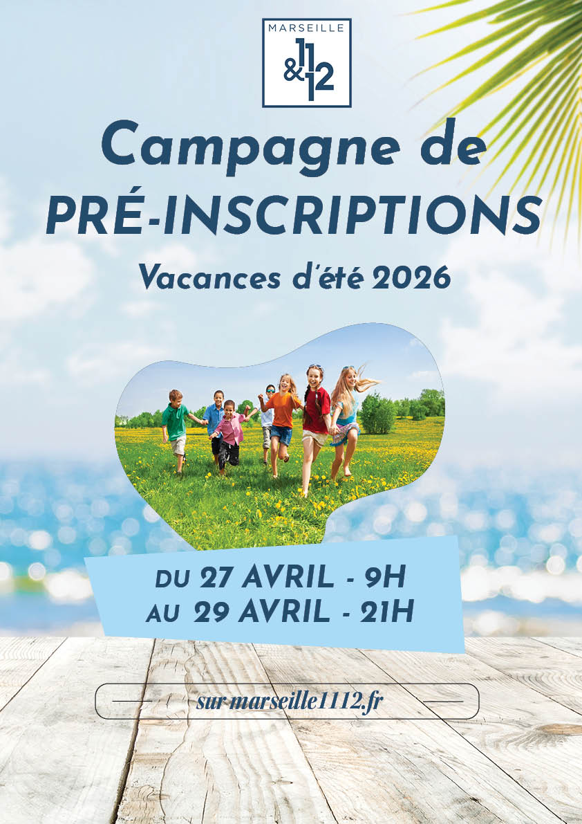 Vous pourrez pré-inscrire vos enfants aux centres de Saint Marcel (11e), La Barasse (11e), La Treille (11e), Cazaulx (12e), La Rosière (12e) et Montolivet (12e) pour les vacances d'été 2026.