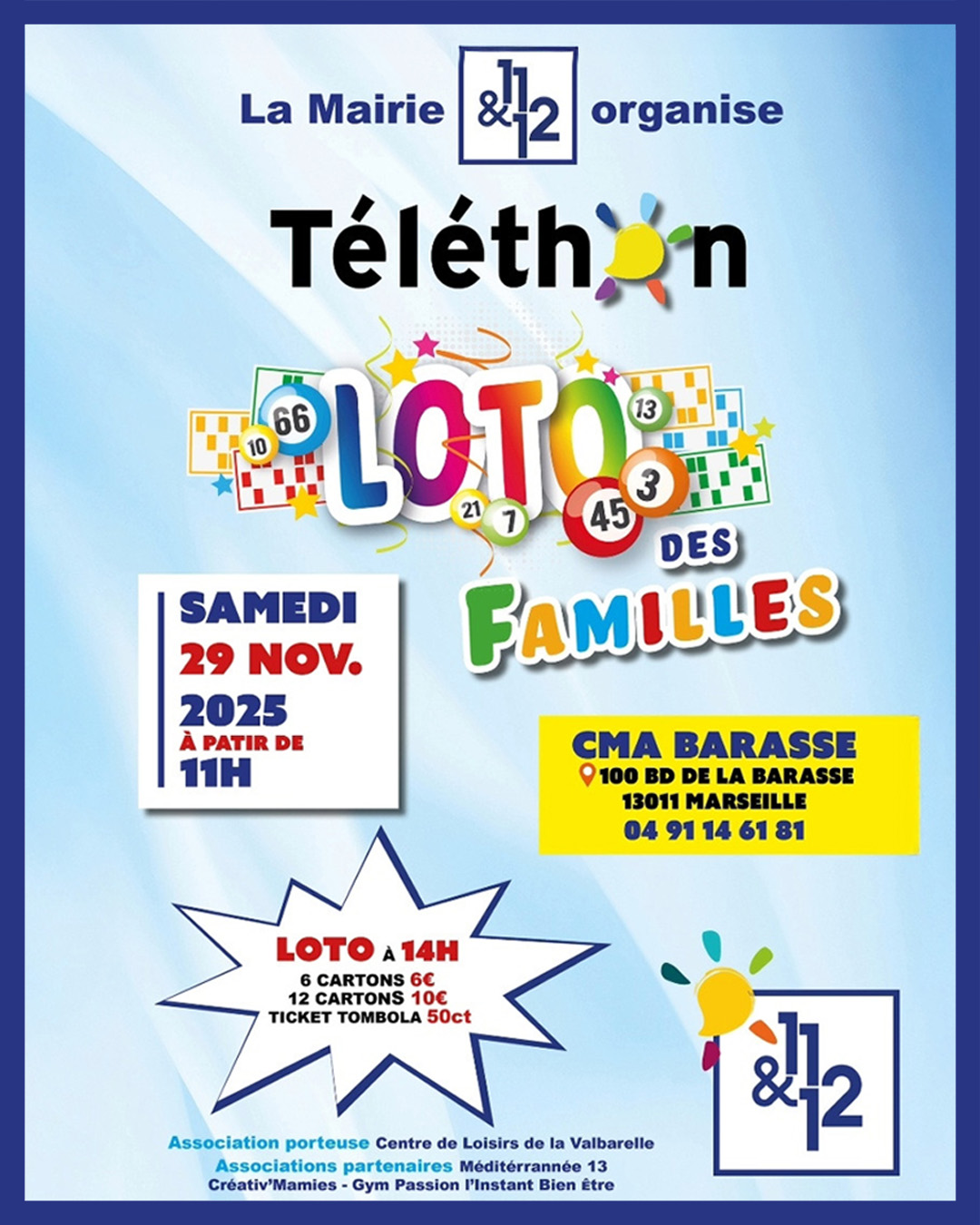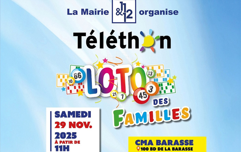 Venez participer au Loto des Familles le samedi 29 novembre à partir de 11h au CMA de la Barasse.