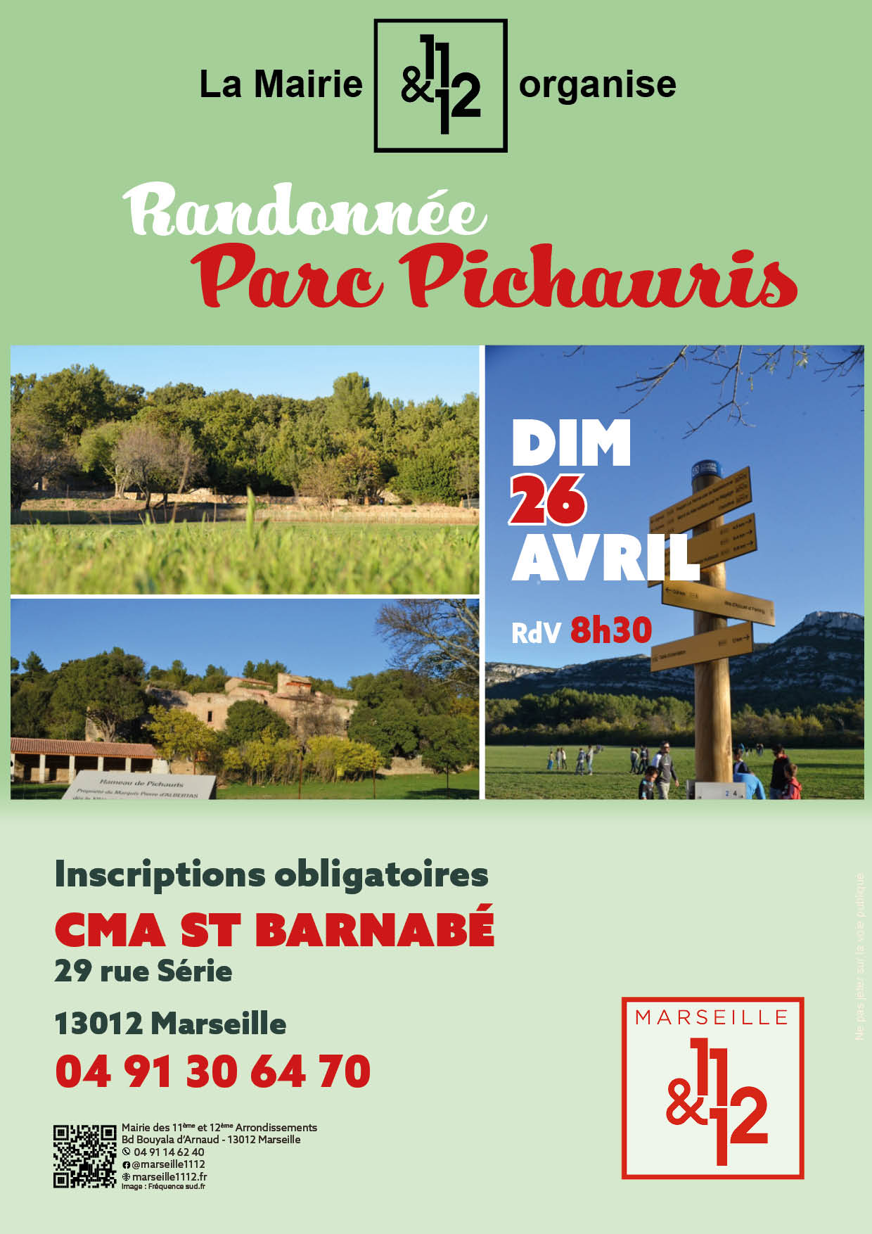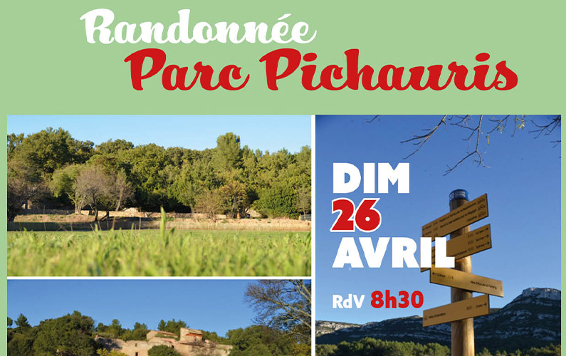 Organisé par le CMA St Barnabé, rdv le dimanche 26 avril à 8h30 pour une journée en pleine nature au parc Pichauris, avec pique-nique aux alentours de 12h.