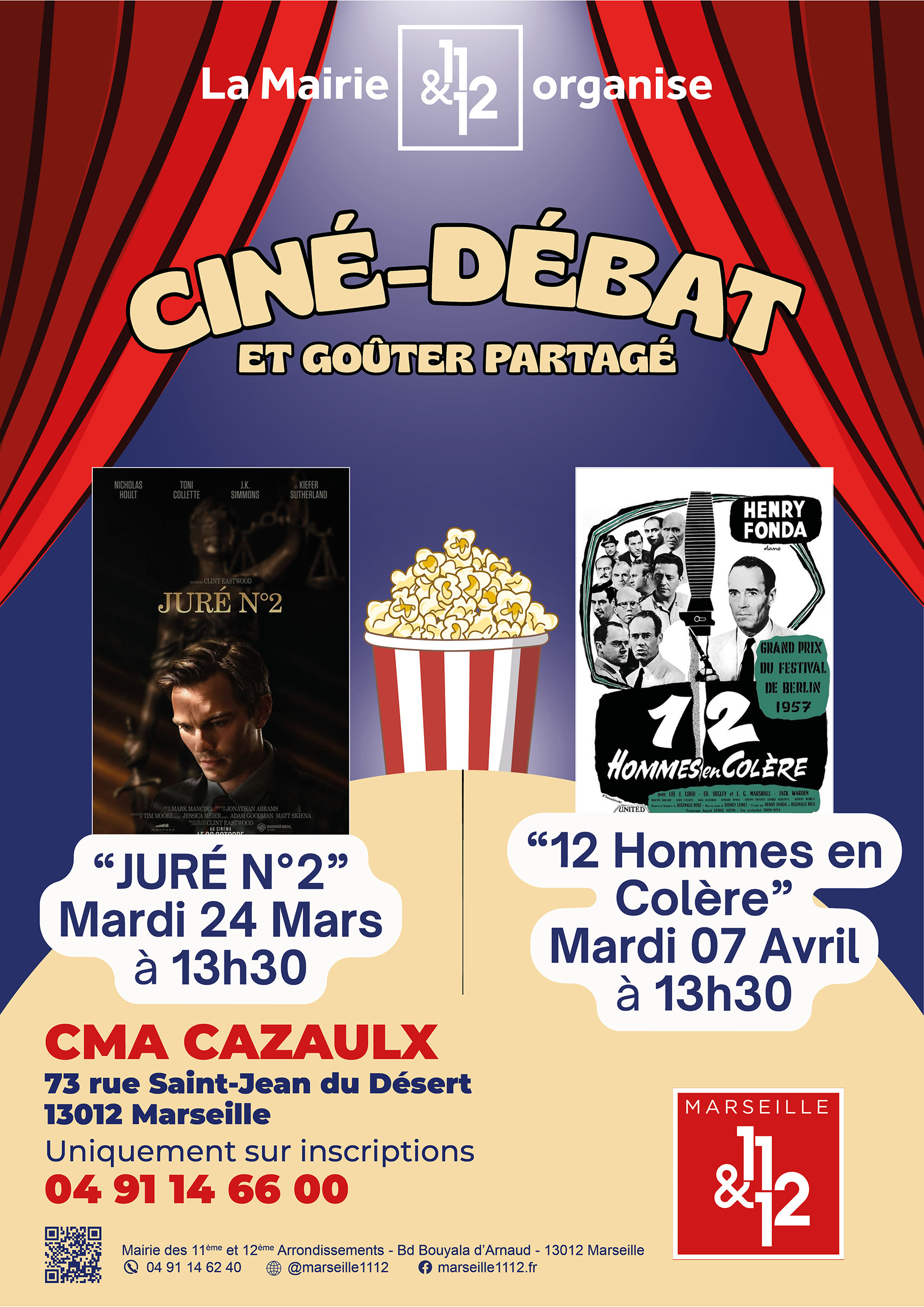Envie d'une séance ciné ? Rdv au CMA Cazaulx mardi 7 avril à 13h30 pour la diffusion du film "12 Hommes en Colère".