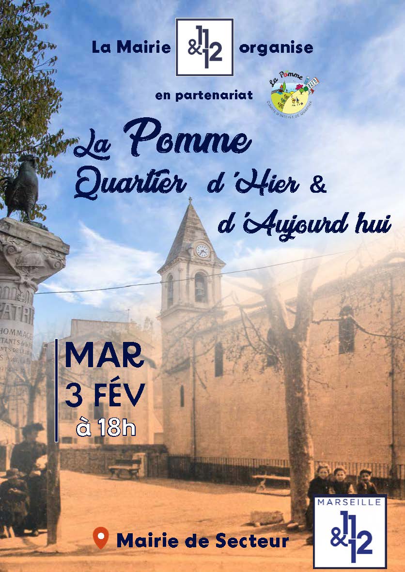 Venez vivre une soirée où l'histoire du quartier "LA POMME" sera mise à l'honneur le mardi 3 février à 18h en Mairie de Secteur.