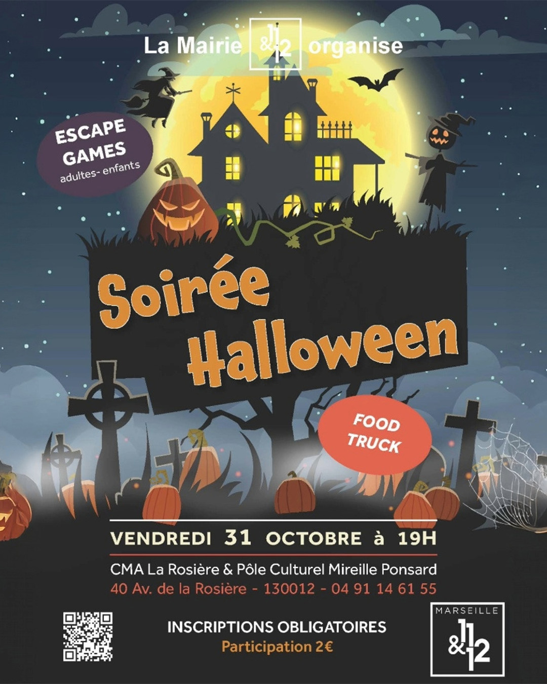 Venez nombreux au Pôle Culturel et CMA la Rosière vendredi 31 octobre à 19h pour une soirée spéciale sur le thème d'Halloween.