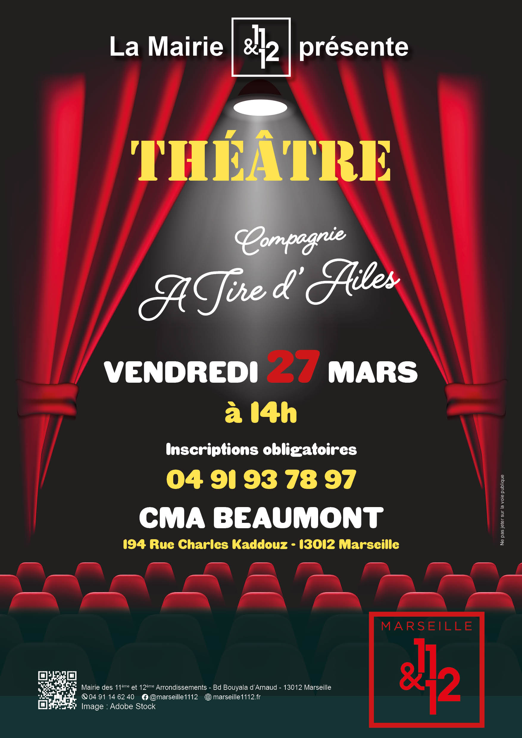 Découvrez la troupe "À Tire d'Ailes" au CMA Beaumont pour un après-midi théâtre le vendredi 27 mars à 14h.