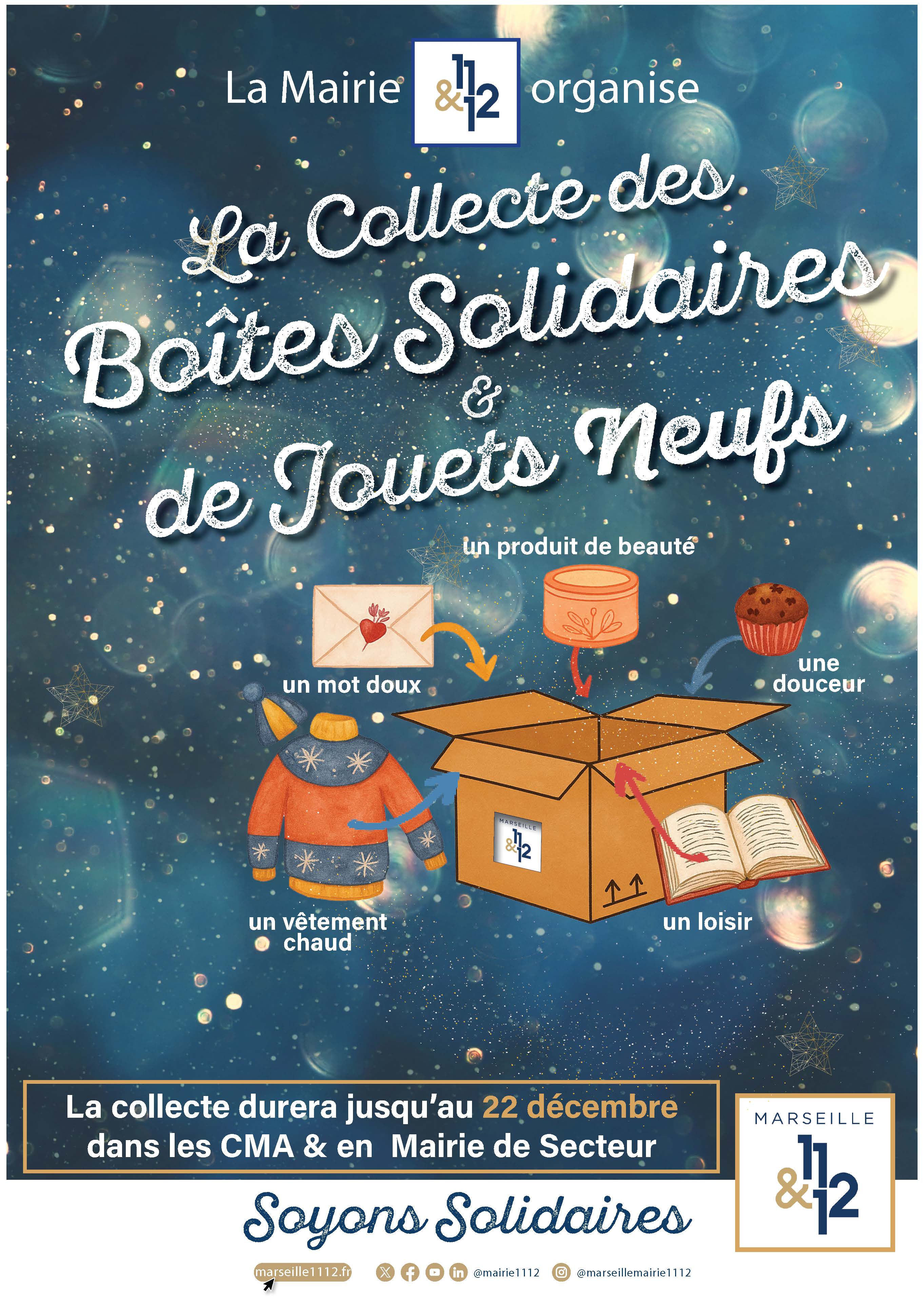 ![]() | du 5 au 22 décembre | Collecte boîtes solidaires et jouets | Mairie de secteur CMA |